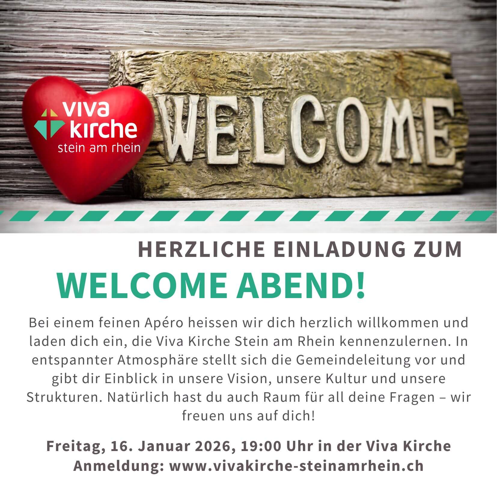 Der Welcome Abend vom 16. Januar 2026 lädt dich herzlich ein, die Viva Kirche Stein am Rhein besser kennenzulernen.Dieser Anlass richtet sich sowohl an Menschen, die erstmals hineinschauen möchten, als auch an alle, die bereits dabei sind und unsere Kirche noch besser verstehen und entdecken wollen. In einer entspannten Atmosphäre stellen wir uns als Gemeindeleitung…