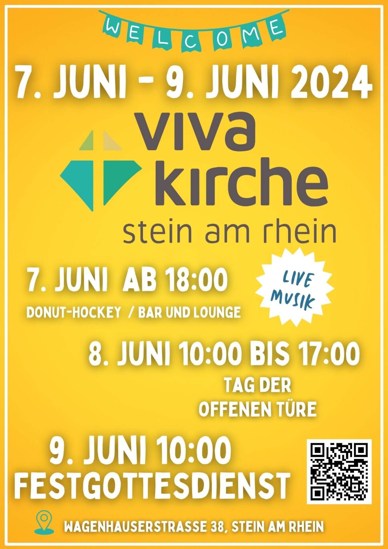 Wir feiern 150 Jahre Chrischona Stein am Rhein und gleichzeitig starten wir durch mit einem neuen Namen: Viva Kirche Stein am Rhein. Das muss gefeiert werden! “Viva” bedeutet Leben. Wir träumen von einer Kirche, die vor Leben sprüht. Eine Kirche, in der Leben geteilt, gefeiert und gefördert wird. Du bist herzlich eingeladen bei uns vorbeizuschauen.