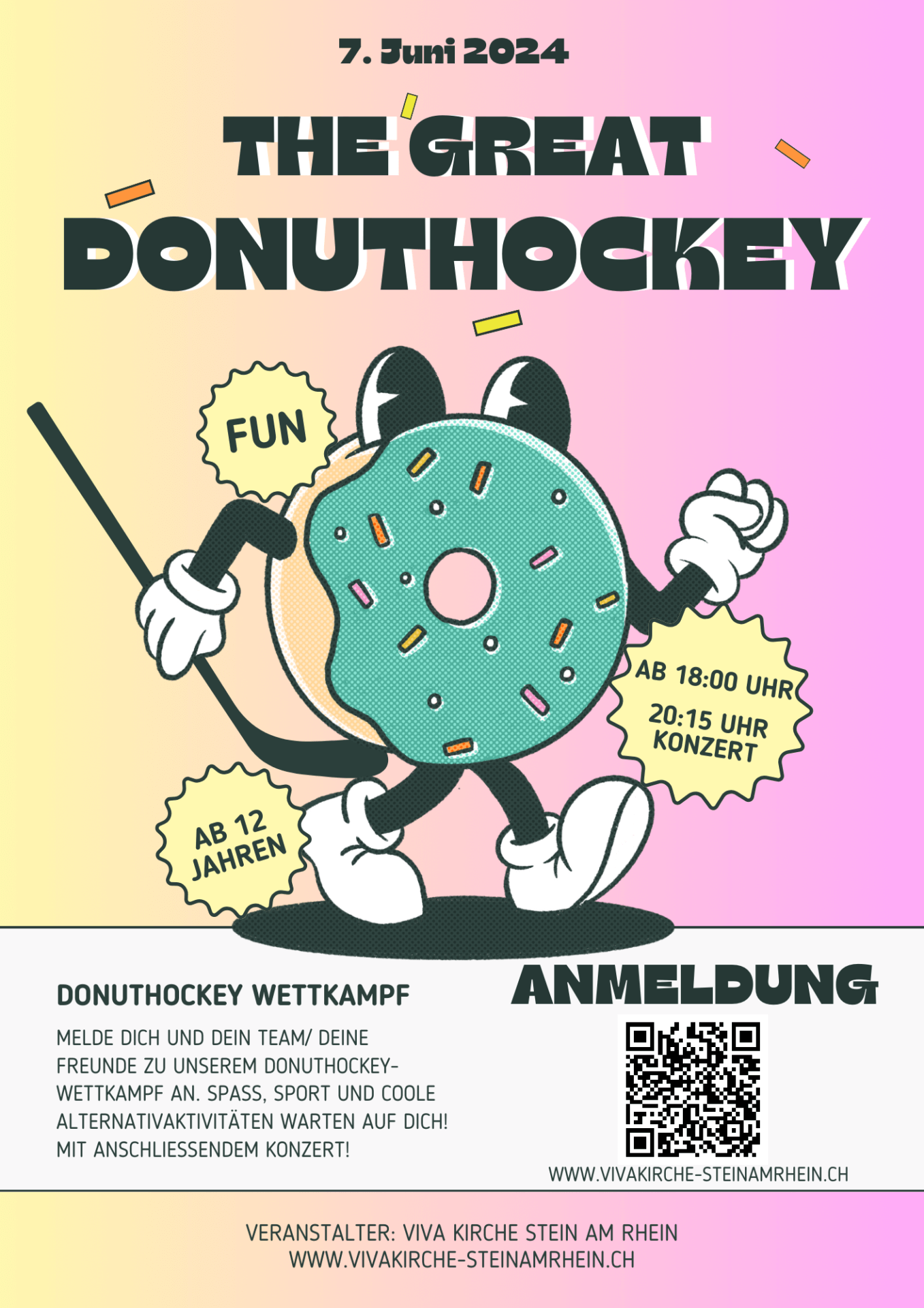Donuthockey: eigentlich alles ganz normal… nur das der Ball rund & Flach ist und in der Mitte ein Loch hat. so ein richtiger donut halt, na interessiert?? Melde dich und dein Team gleich an zu unserem grossen Donuthockey. Du kannst dich auch Einzeln anmelden, dann wirst du von uns in ein Team eingeteilt. Gespielt wird…